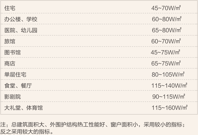 消費(fèi)者可根據(jù)房屋的用途,用房屋面積乘以上述數(shù)據(jù),得出房間需要的供熱量。但以上僅
