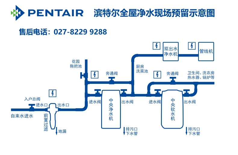 全屋凈水安裝需提前預埋好管道,一般在水電進場之前交接好后續(xù)注意事項,把生活用水和飲用水做區(qū)分。